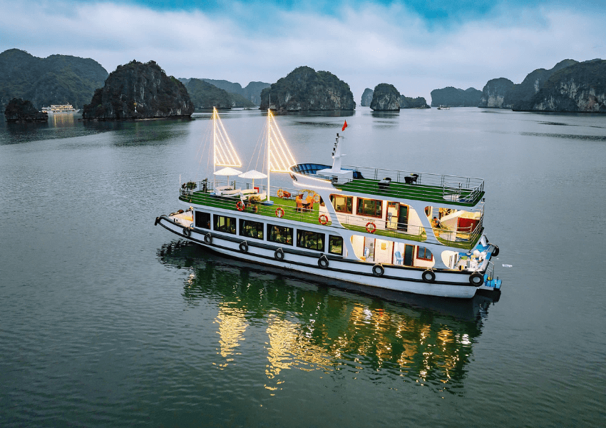 Bạn đang tìm kiếm một chuyến du ngoạn sang trọng nhưng vẫn tiện lợi trong ngày? Hãy cùng chiêm ngưỡng những hình ảnh ấn tượng của các du thuyền 4 sao tại Vịnh Lan Hạ – nơi biển xanh ôm trọn những hòn đảo đá vôi kỳ vĩ. Từ thiết kế đẳng cấp, không gian sang trọng đến những trải nghiệm hấp dẫn như chèo kayak, tắm biển và thưởng thức ẩm thực tinh tế, tất cả sẽ khiến bạn muốn xách vali lên ngay!